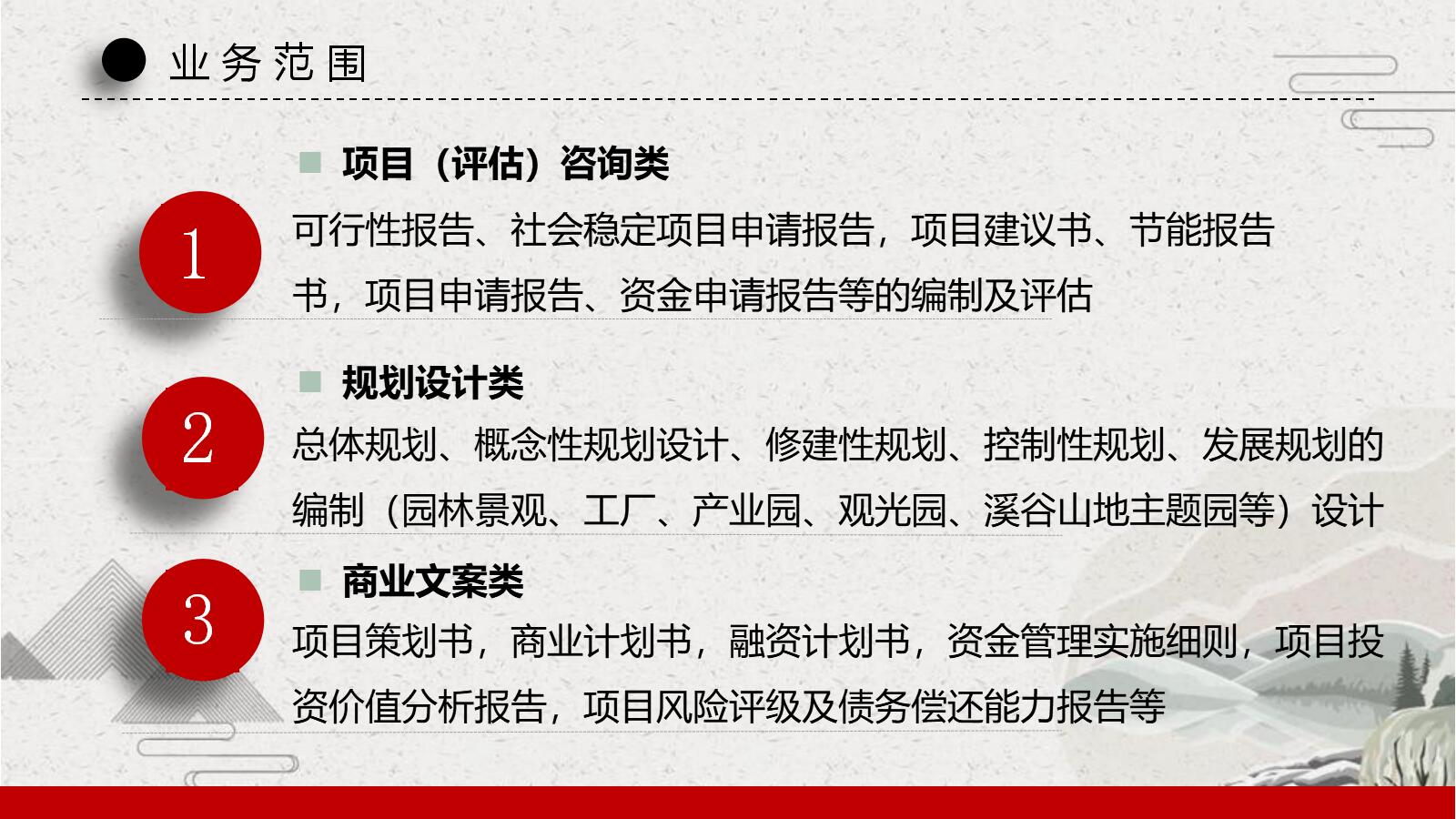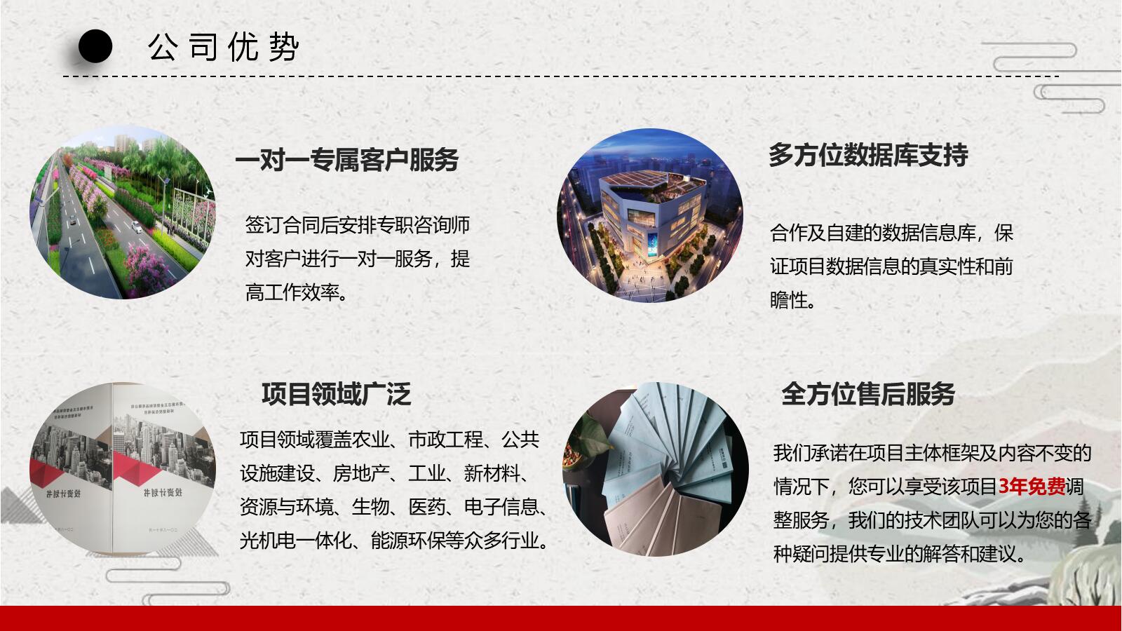 商业计划是招商引资项目获得成功的基本保证,商业计划制作需要客户提供尽可能详细的资料,使之更、更具有说服力和吸引力,以便增加投资合作的可能性。
