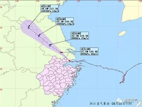 浙江应急广播FM93交通之声气象天天最新消息:今年第12号台风“云雀”(热带风暴级)今天(8月3日)10点30分在上海金山登陆,11时位于上海金山境内,就是北纬30.7度、东经121.3度,9级(23米/秒),985百帕。预计,“云雀”将以每小时20公里左右的速度向西北方向移动,强度逐渐减弱。