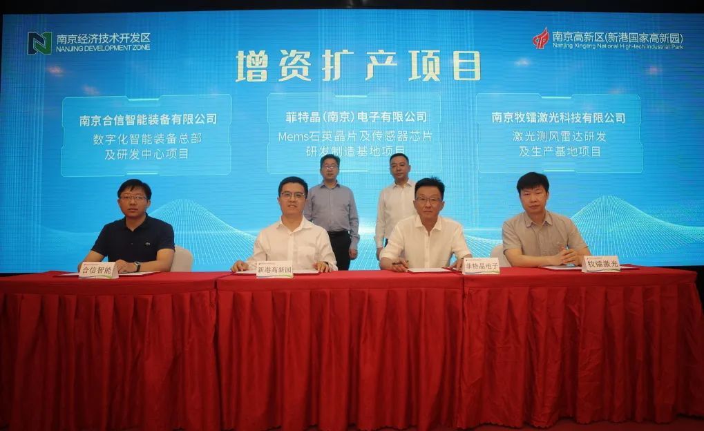 Mems 石英晶片及传感器芯片研发制造基地项目、南京牧镭激光科技有限公司激光测风雷达研发及生产基地项目、南京合信智能装备有限公司数字化智能装备总部及研发中心项目3个增资扩产项目签约,将在园区建设新总部,总投资20亿元。