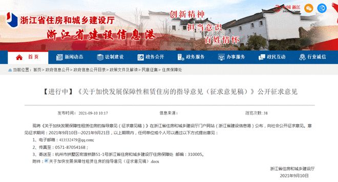 9月10日,浙江省住房和城乡建设厅网站公布《关于加快发展保障性租赁住房的指导意见(征求意见稿)》(下称“指导意见”),并向社会公开征求意见。此次意见征求期间为2021年9月10日--2021年9月21日。