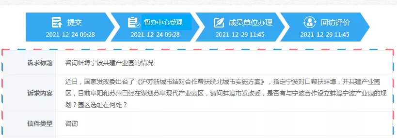 诉求:咨询蚌埠宁波共建产业园的情况?近日,国家发改委出台了《沪苏浙城市结对合作帮扶皖北城市实施方案》,指定宁波对口帮扶蚌埠,并共建产业园区,目前阜阳和苏州已经在谋划苏阜现代产业园区,请问蚌埠市发改委,是否有与宁波合作设立蚌埠宁波产业园的规划?园区选址在何处?