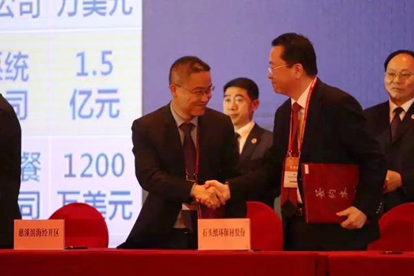 概况:项目由香港石头纸环保材股份有限公司与慈溪滨海经济开发区进行签约,将采用环保的造纸技术,其产品石头环保纸具有全球性专利的制程,在原物料成本、制造费用、投资总额等方面低于传统木浆纸。项目拟征地184亩。预计投产后年销售额超过10亿元。
