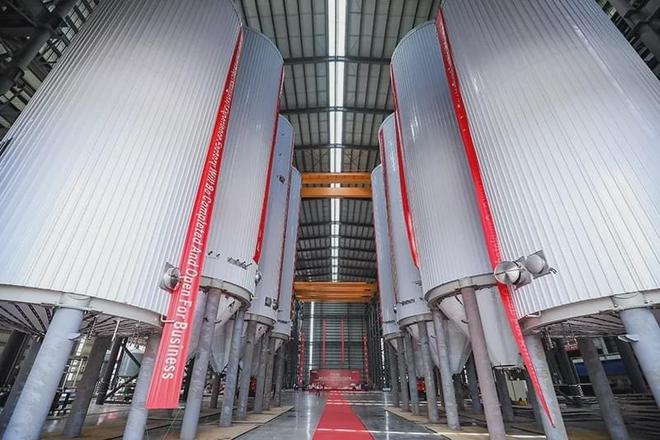 新厂大罐车间高39米,是目前宁波市单层最高的工业厂房——大型发酵罐和糖化罐设备系统的应用,将直接解决之前因厂房高度限制,部分大型设备需露天作业的困难,大幅提高生产效率和能力。