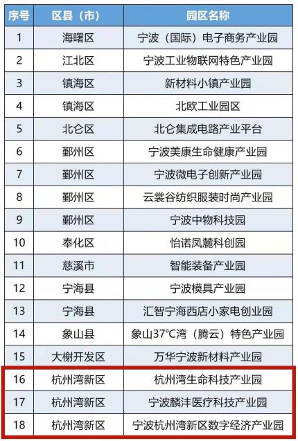 宁波市公布首批特色产业园创建名单,共18个特色产业园入选。其中,新区数字经济产业园、麟沣医疗科技产业园、杭州湾生命科技产业园等3家独具特色的产业园在列。