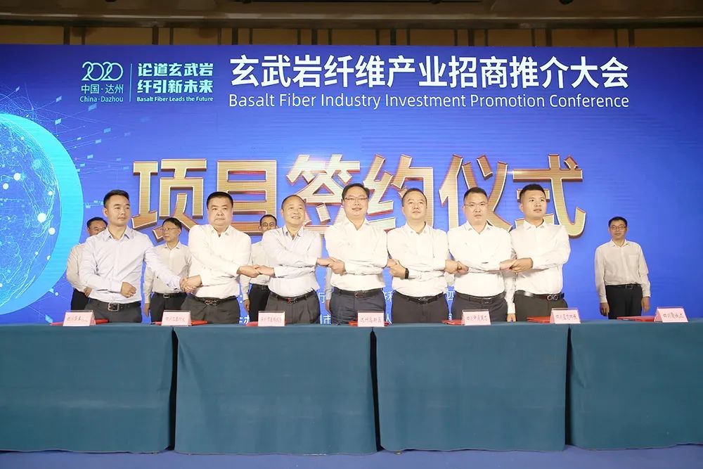 2020年9月25日,“玄武岩纤维产业全国招商推介大会”在达州隆重举办,来自国内知名高校的20余名专家学者代表及近百名知名企业家代表齐聚于此,一同探讨国内玄武岩纤维产业发展新趋势,共谋达州新材料产业发展新路径。会议现场,6个玄武岩纤维产业投资项目进行了签约。