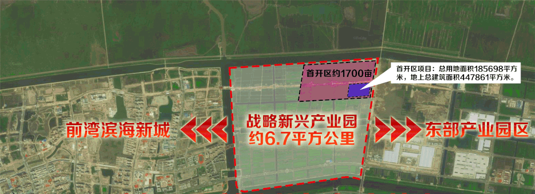 杭州湾新区战略新兴产业园位于滨海新城启动区东侧,规划东至兴慈七路、南至十塘横江、西至陆中湾江、北至十一塘横江,约6.7平方公里。其中首开区位于战略新兴产业园东北角区域,占地面积约1700亩。