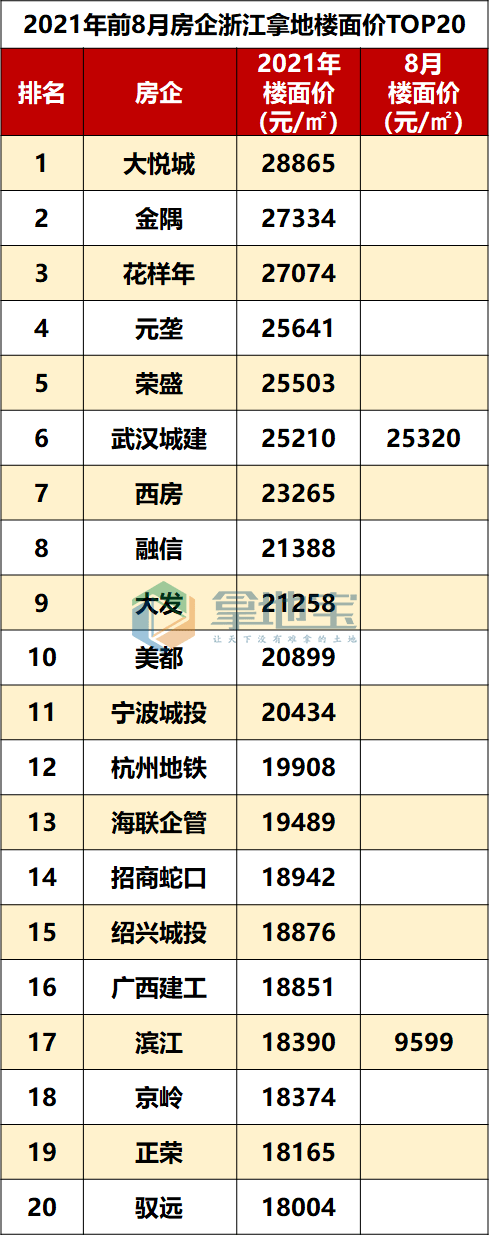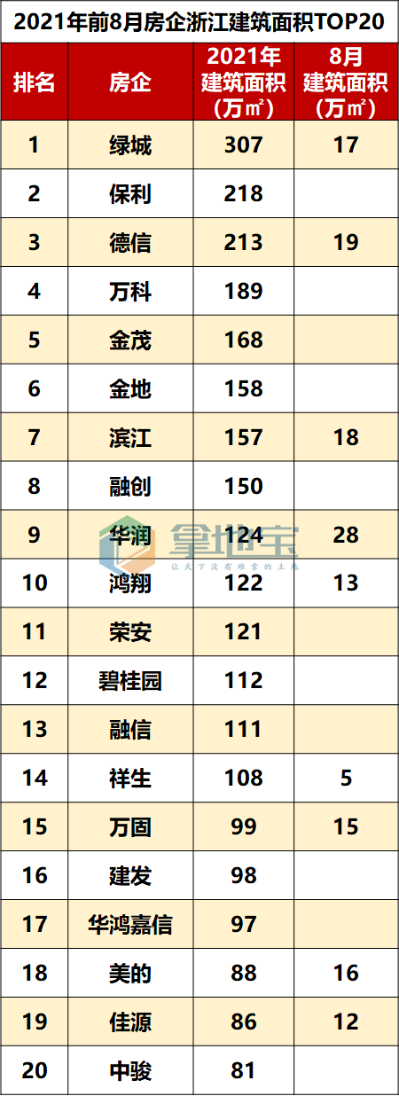 【土地8月报①】浙江:绿城超第二名百亿领跑宁波跌至第四!